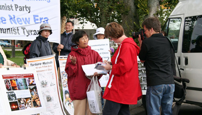 继北部Whangarei及中部的New Plymouth行程之后,法轮功学员们又南下来到Wanganui及Palmerston North。在Palmerston North的周六早市上,当学员们讲述了大法的美好祥和,以及无辜遭受中共残酷迫害的真相后,当即有8位中国人表示要退出邪恶的共产党及一切相关组织。当地的最大英文报对活动进行了采访,Wanganui的记者随后也做了电话采访。