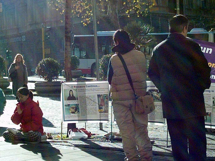 2006年元旦期间,意大利罗马的法轮功学员到阿根廷大使馆请愿,呼吁阿政府抵制中共的暴力输出。学员在使馆外面炼功发正念,并向过往的行人发放真相资料。意大利法轮大法学会通过电话和传真向阿根廷大使馆表达了对阿根廷事件的关注,并向大使助理卡洛斯先生(Carlos)介绍了法轮大法的真相,同时也将意大利法轮大法学会的公开信和包括·九·评*在内的真相资料邮寄给阿根廷大使馆。