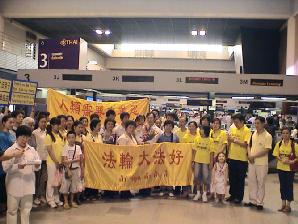 ![]() 泰国法轮功学员在机场为黄国华父女送行 |