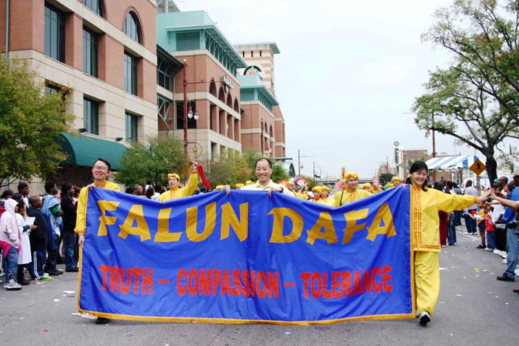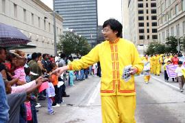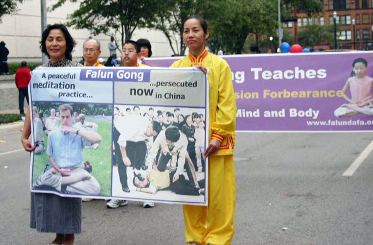 然而在中国,法轮功学员没有信仰自由的权利,没有自由炼功的权利,更加不可能有游行的机会。中共邪*党-对信仰“真、善、忍”的法轮功学员的残酷迫害已有六年多了,铺天盖地的谎言迷惑着中国人。中共用洗脑、酷刑等方式对法轮功学员进行身心的摧残,有些学员甚至失去了生命。海外的法轮功学员始终大善大忍,理性、和平的利用各种形式向人们讲真相,揭穿谎言,揭露迫害,将真相展示给世人。