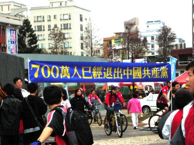 ![]() 自由车阵从“退!党!”横幅下出发 |