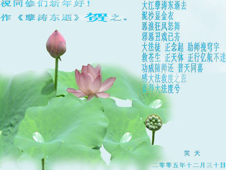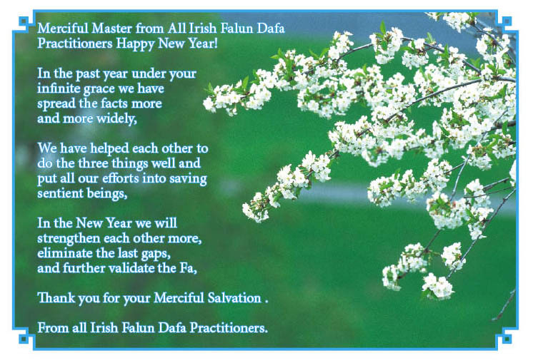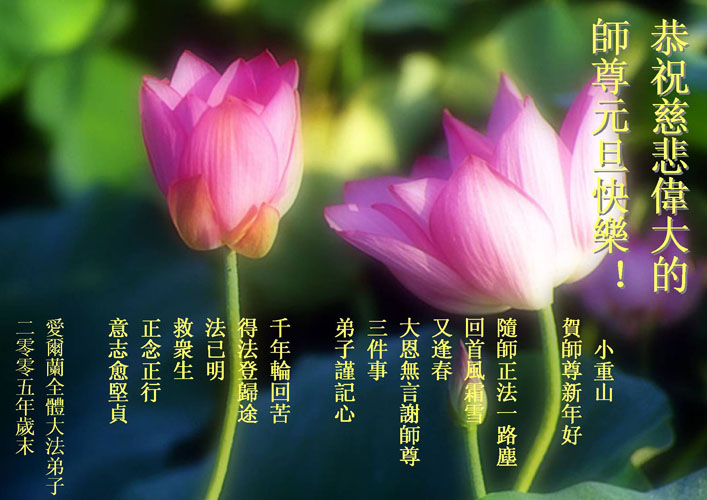 我们一定会做好大法弟子的三件事,救度更多的世人,稳步走好今后的路。同时祝全世界的大法弟子新年好!