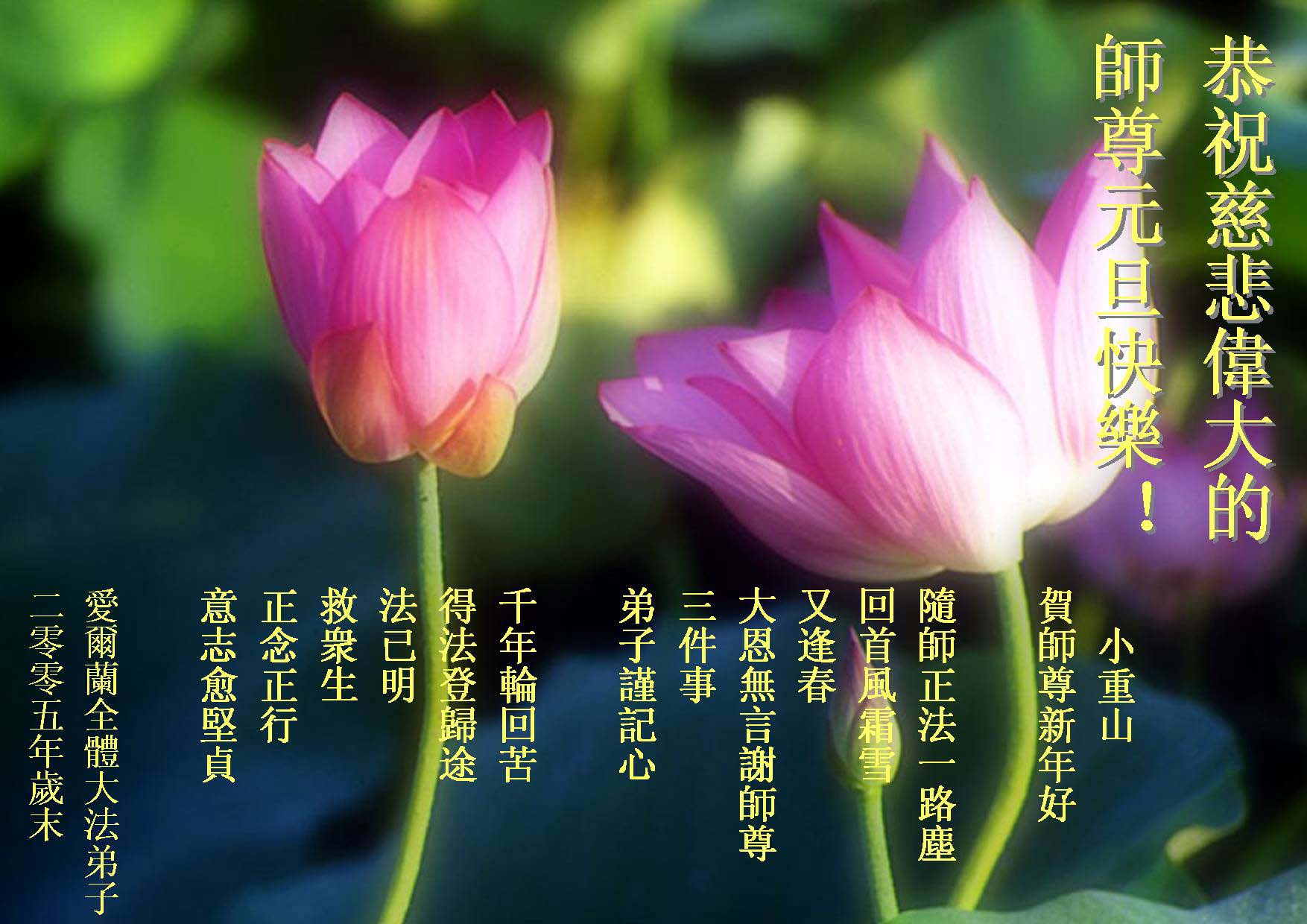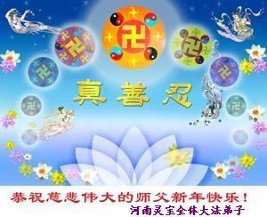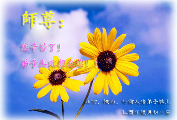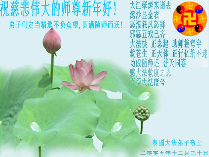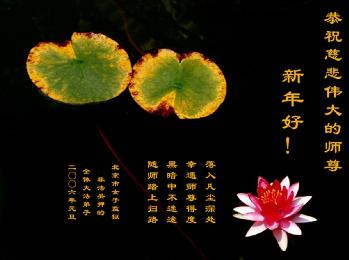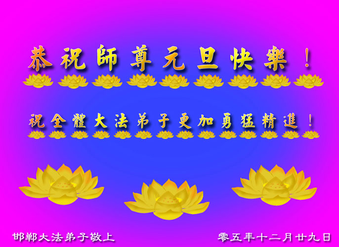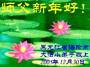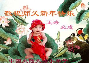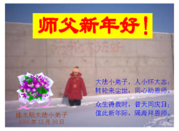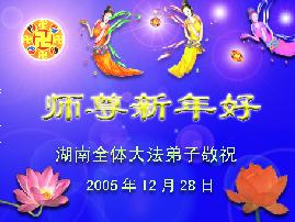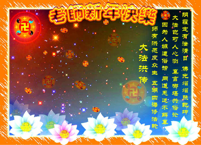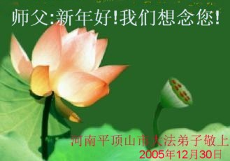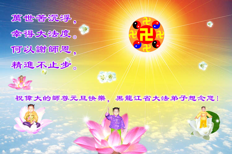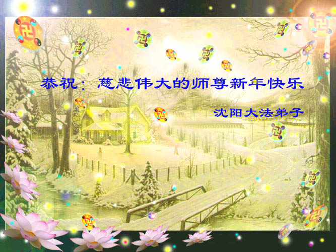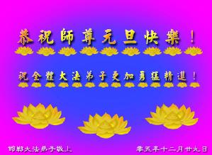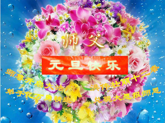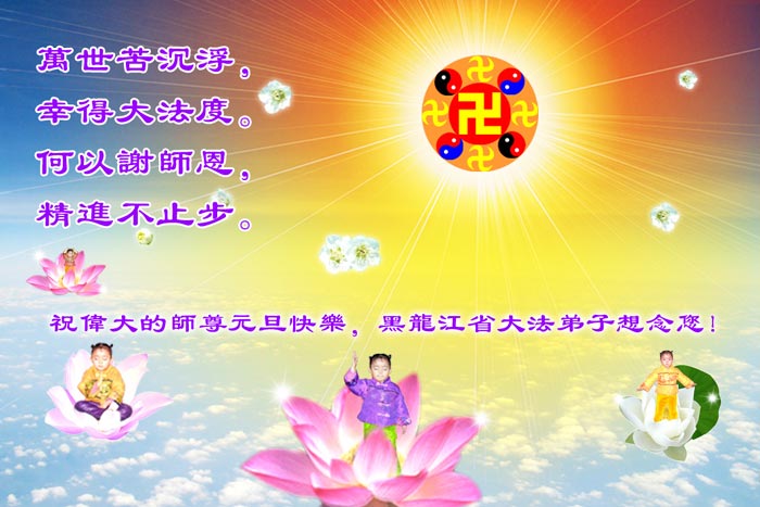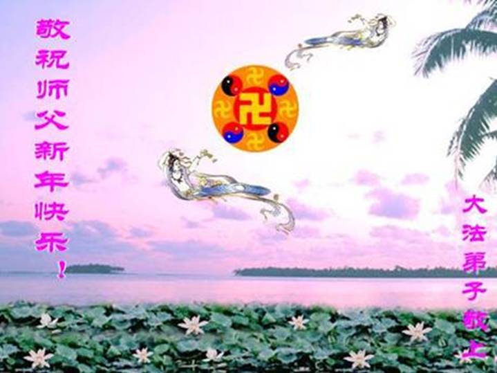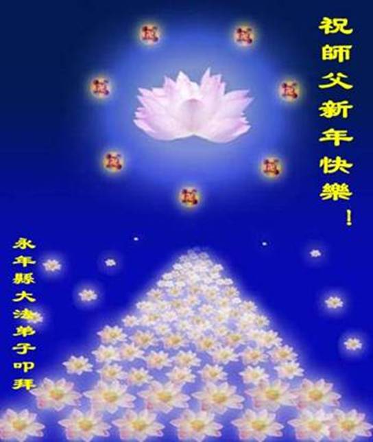 弟子们想念您:在元旦佳节来临之际,我们湖田地区全体大法弟子(小弟子)祝慈悲伟大的师尊新年快乐!