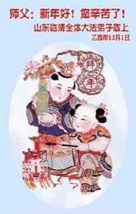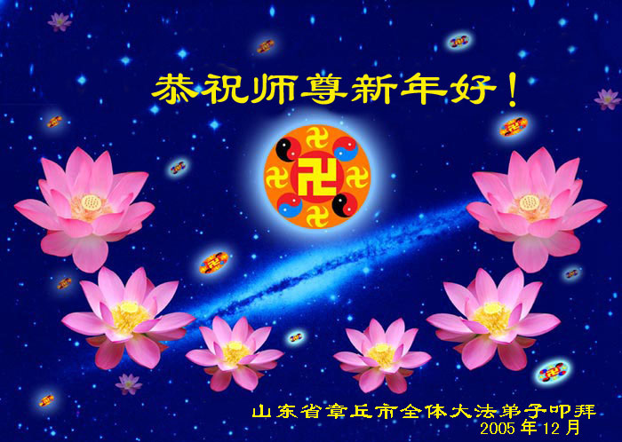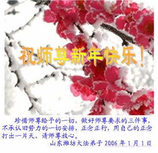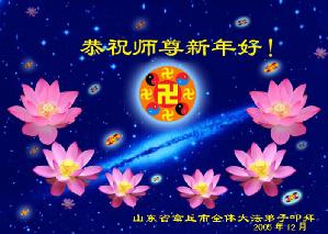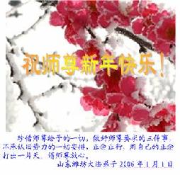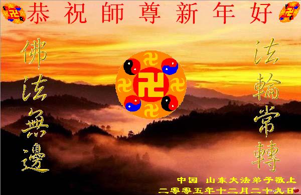 值此元旦佳节,山东省诸城市大法小弟子向无比尊敬的师父拜年问好!