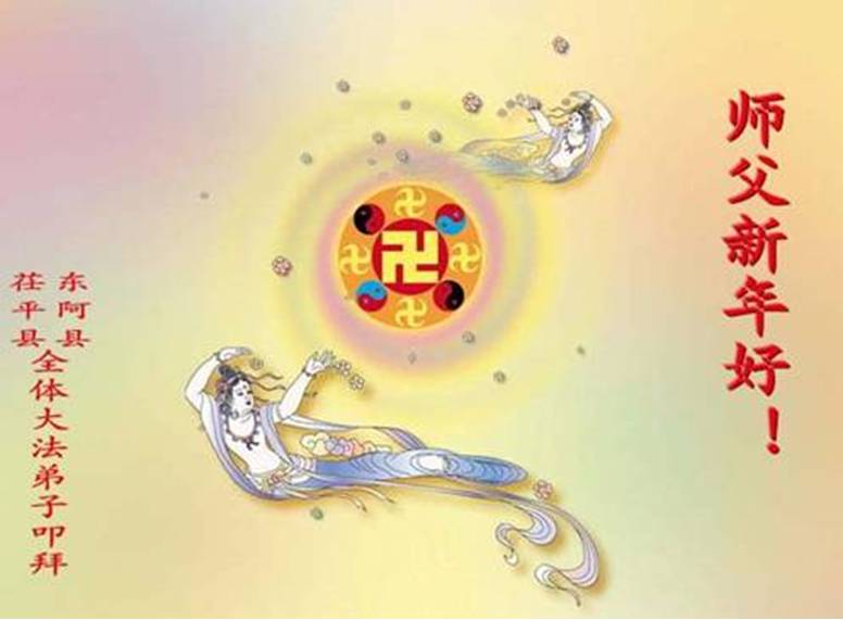 新年来到之际,招远市全体大法小弟子祝慈悲伟大的师尊新年快乐!师父,在正法的最后的路上,我们一定会跟上正法進程,做好师父要求的三件事,不辜负您的慈悲苦度。