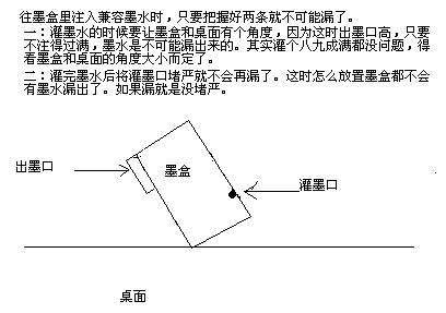 首先要了解你要改的墨盒的构造,将墨盒的通气孔堵死,墨水用去1/3或一半,接入墨盒的外供墨管不能与墨盒中的墨水接触,这是为了防止墨盒中的墨水回流到外置墨盒。供墨管连接处要保证不漏气,可以使用用完的油芯管用火加热后弯曲作为连接墨盒和供墨管的中介,因为其较硬,好用胶粘接。供墨管与墨盒连接时墨水要充满。