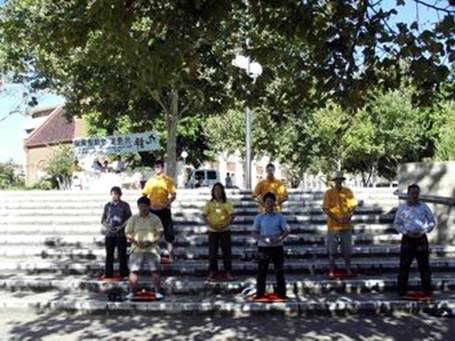 法轮功学员澳洲中使馆前宣读法轮大法学会公告(图)