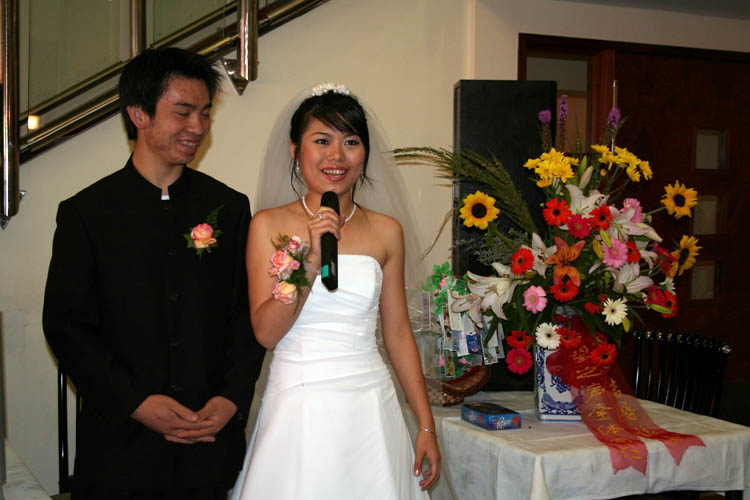![]() 修炼法轮功的新娘向来宾表示感谢 |