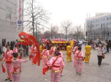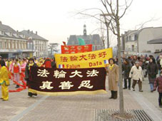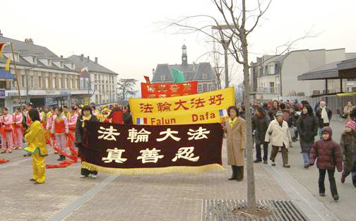 【明慧网2006年1月30日】2006年1月28日,法国法轮大法协会应大巴黎地区圣-德尼省诺瓦西勒岡市华人社团邀请,参加了当地的华人新年游行,和当地的华人一起欢度新年。法轮功学员们的腰鼓舞、莲花舞、扇子舞和法轮功功法表演赢得了当地民众的一致好评,也使更多的人了解了法轮功。