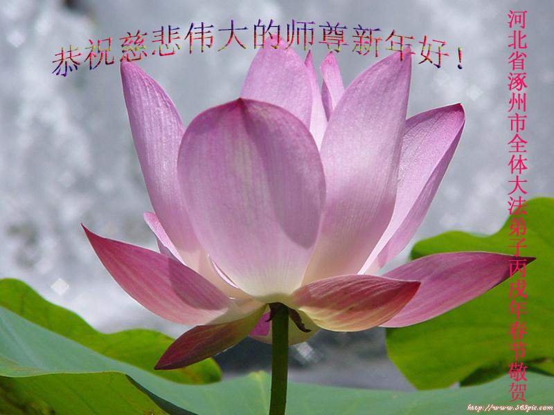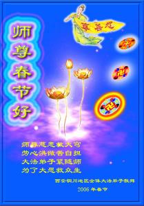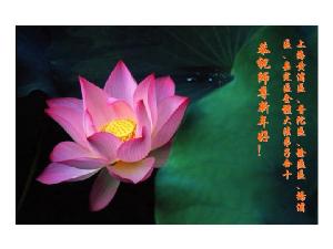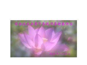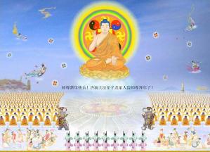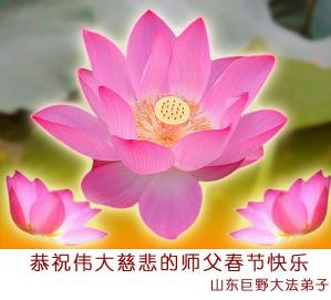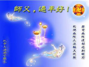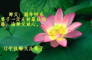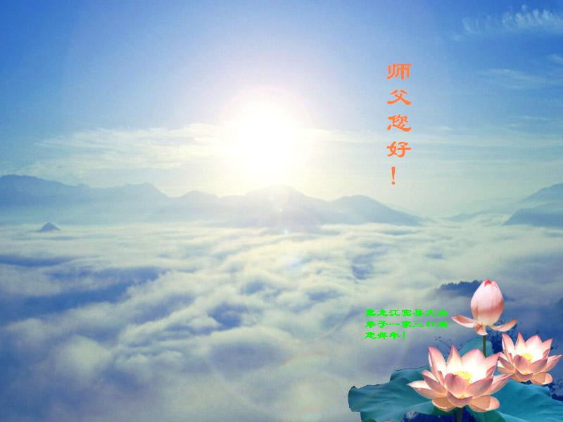 弟子首先感谢您的救度之恩,教会了我们如何识别什么是真正的好和什么是真正的坏;教会了我们如何做人;使我们真正知道了自己的家在什么地方;是您告诉弟子,不要迷于人世间的花天酒地,牢记自己的美好的家园在天国,返本归真。千言万语说不尽师父对我们的佛恩浩荡!在新年来临之际,弟子向师尊发出最真诚的问候:祝师尊身体健康!新年愉快!在新的一年里笑颜常开。请师尊放心,弟子决不辜负师父救命之恩,在以后的日子里弟子一定要认真学法,做好师父给我们安排的“三件事”。在修炼的路上勇猛精進!