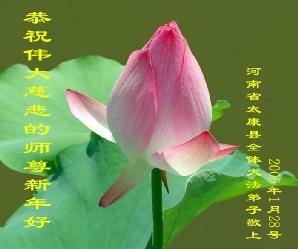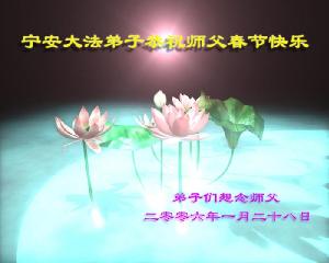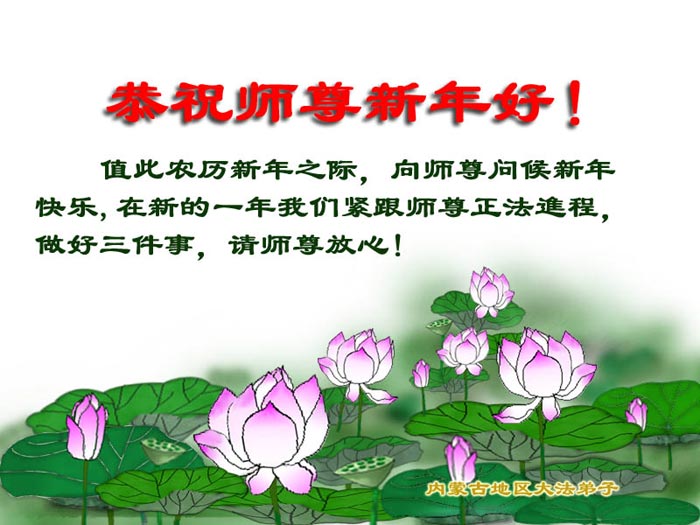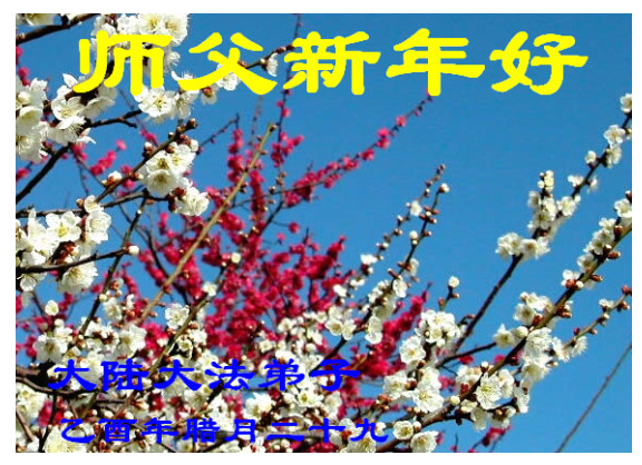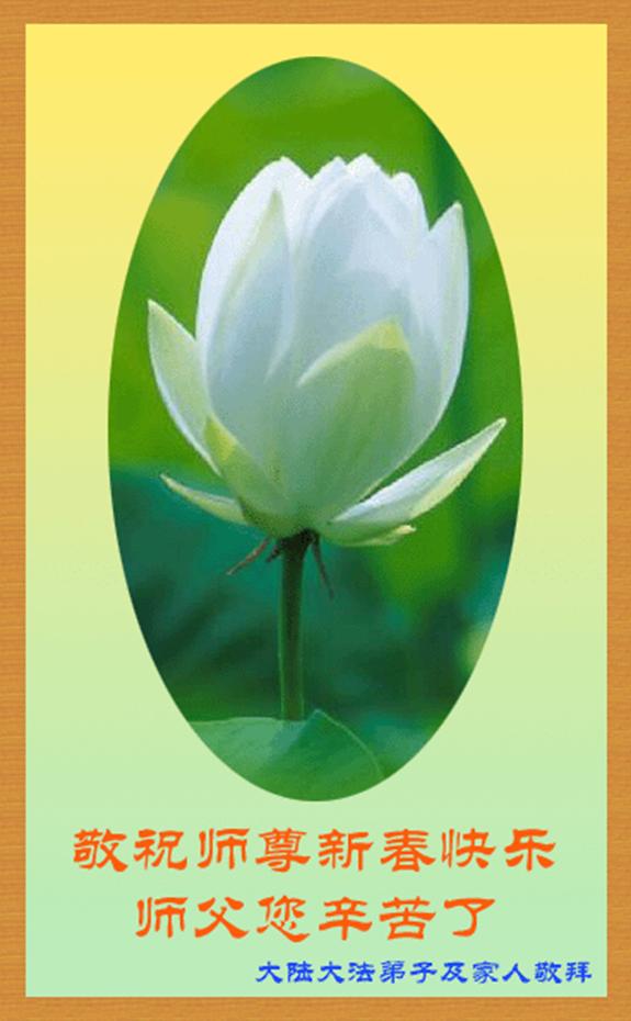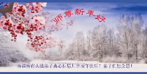 大陆中学教师中的全体大法弟子恭祝慈悲伟大的师尊新年快乐!感谢您救度众生,我们将在正法的最后时刻,要更加珍惜宝贵的时光,救度每一个有缘人,做精進的助师的法徒!请师尊放心。