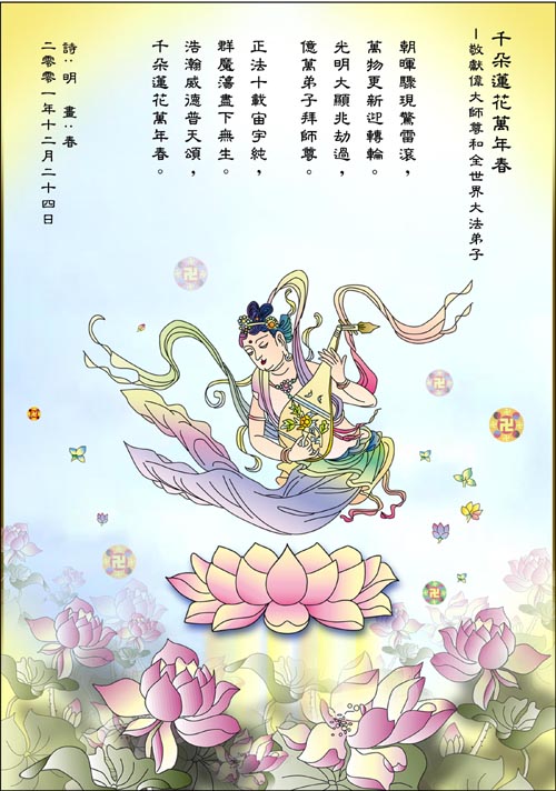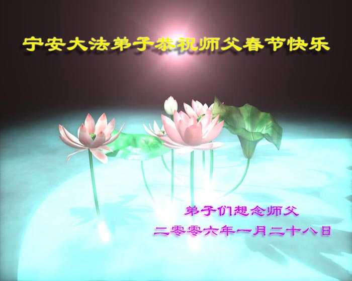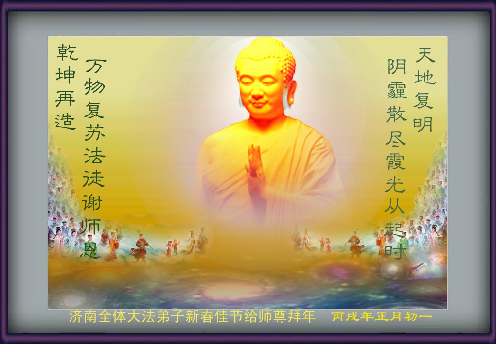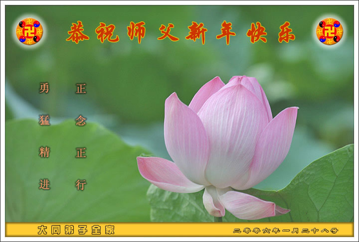 在这中国传统的新春佳节,让师父多一些欣慰,少一些操劳,弟子在新的一年里会更加勇猛精進!做好三件事,在修炼的路上时时处处用法的标准衡量自己的每一言行,去掉一切执著用最纯净心灵兑现史前的誓约,圆满完成师尊赋予弟子的神圣使命!