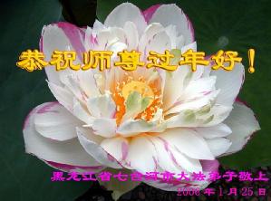 值此辞旧迎新之际,谨代表方正县全体大法弟子向慈悲伟大的师尊致以节日的问候!给师父拜年了!恭祝师尊新年快乐!