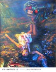 据油画“真善忍信仰者之死”的作者赵杰希介绍,该作品是根据2001年6月,发生在湖北省麻城白果镇一个真实的故事而创作的:两名法轮功修炼者由于不愿放弃修炼法轮功,被当地中共政府干部绑在飞驰的摩托车后活活拖拽。据赵杰希介绍,绘制这幅作品并来参展就是为了唤起更多的人对中国法轮功学员至今仍在遭受的迫害给予关注,帮助早日结束这场残酷的对“真善忍”信仰者的迫害。