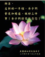 感谢师父的慈悲救度。在新的一年里,我们一定严格要求自己。正念正行,走正师父安排的路。