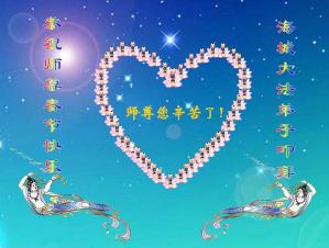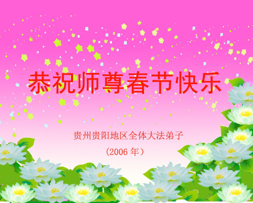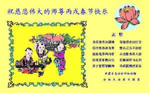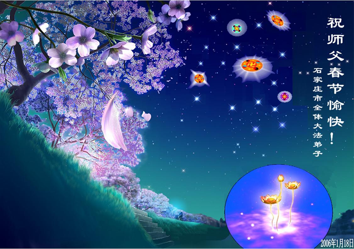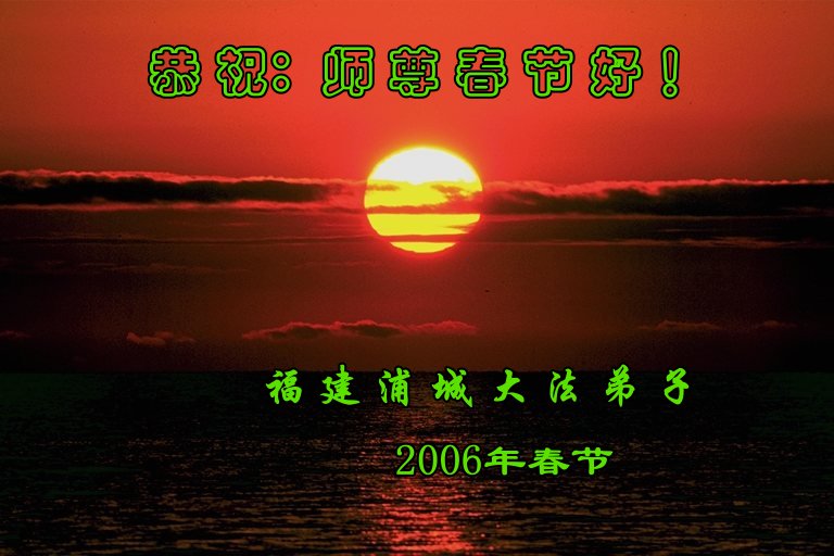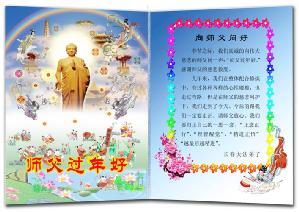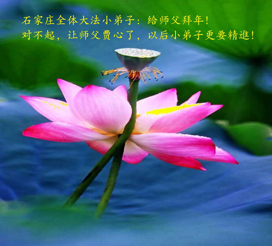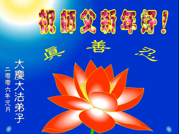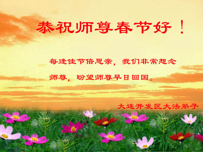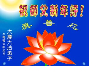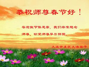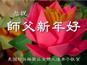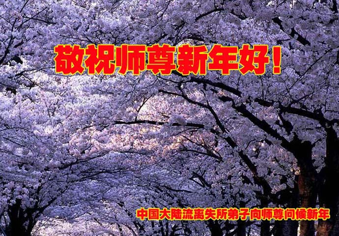 用尽人类的语言也无法表达我们对师父的感恩,在此新春佳节来临之际,我代表家人及身边的同修向慈悲伟大的师父拜年:师父,过年好!弟子们非常非常的想念您!