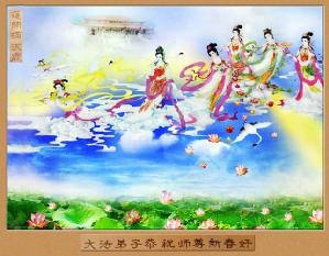 正法洪传谢师恩,救度众生苦劳心。弟子精進不懈怠,圆容大法报师恩。十五春秋正法路,天上世间魔难阻。万物皆为大法造,留下神话醒世人。