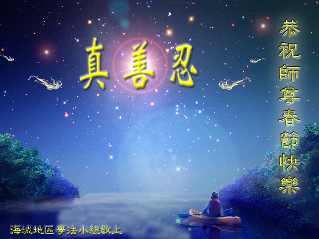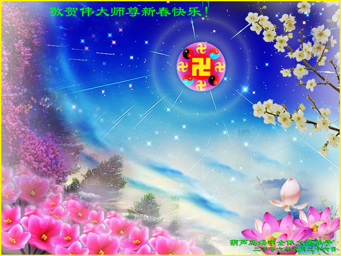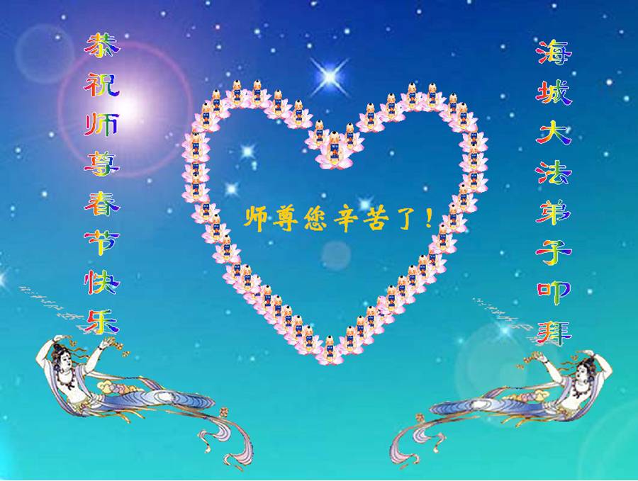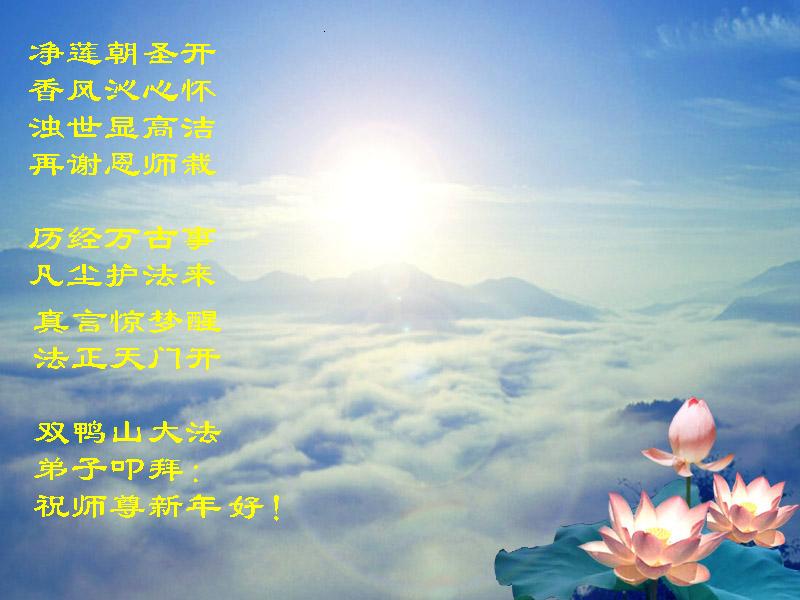 师父过年好,您辛苦了。在这辞旧迎新的喜庆日子里,我们龙口市全体大法弟子倍加思念慈悲伟大的师尊,师尊为救度全宇宙的众生操尽了心,在新的一年里,我们唯有更加精進、更清醒、更理智、更纯净的走好、走正最后的修炼之路,才能不辜负师尊的慈悲苦度。