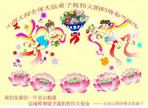 在这辞旧迎新的时刻,山西全体大法弟子更加思念师尊,感谢师尊的慈悲呵护。我们决心精進实修,修去各种人心;反迫害,清理邪灵,解体邪恶,清除“党文化”的毒害;排除一切干扰做好三件事,正念正行走好证实法的路。