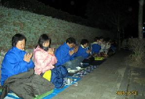 2006年1月1日深夜一点十分,中领馆前最后一次发正念结束了,法轮功学员们迎来了新一年的曙光……
