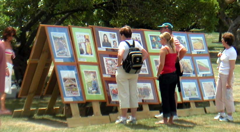 法轮功学员在声声“新年好!”的祝福中,迎接着来自世界各地的参观者。令人欣慰的是,他们中很多人都对法轮功在中国大陆受迫害的情况有所了解。然而,当这些参观者看过展览后,却更加深刻的感受到法轮大法的祥和与酷刑迫害的强烈对比。