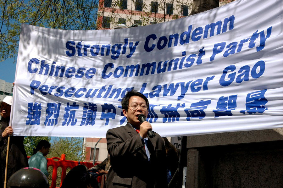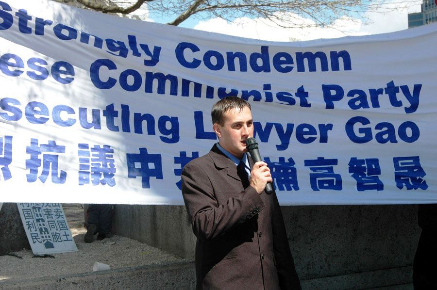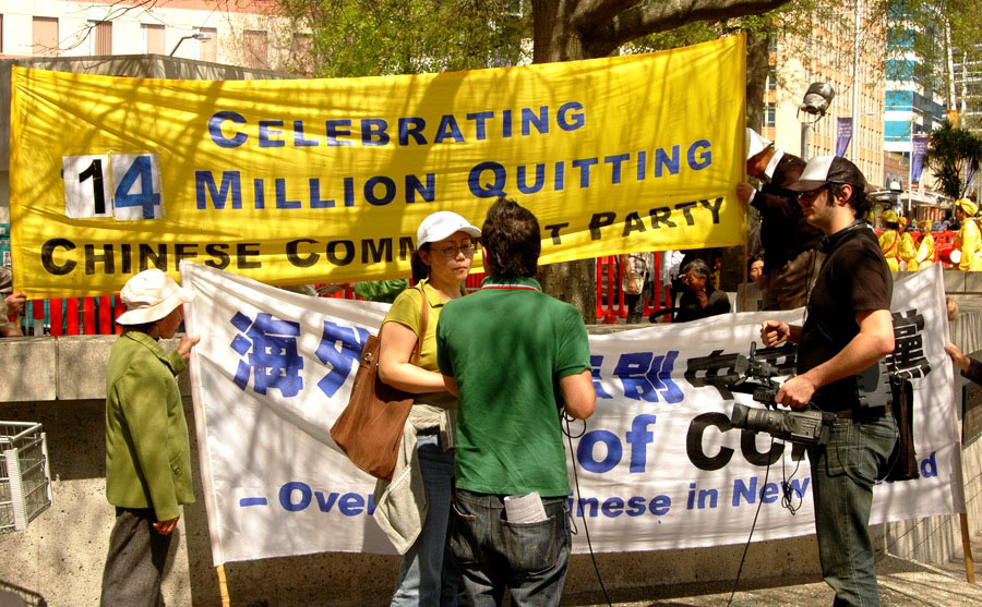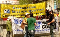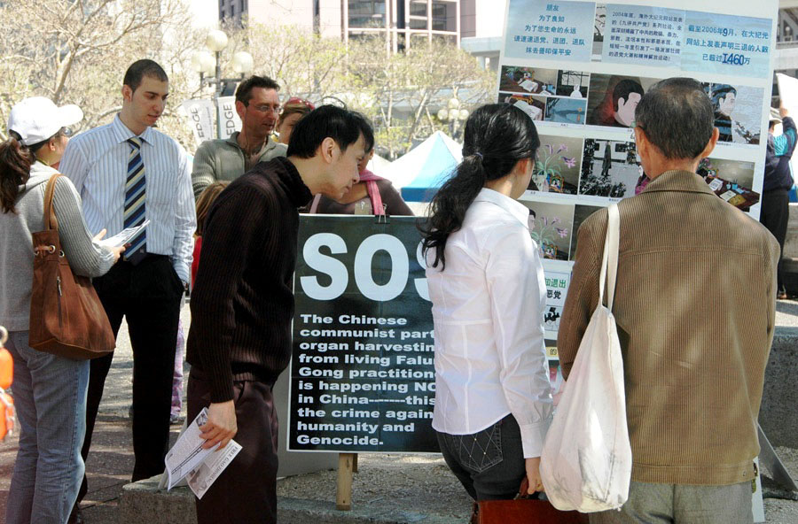 集会现场揭露中共暴行的展板吸引了民众了解真相 |