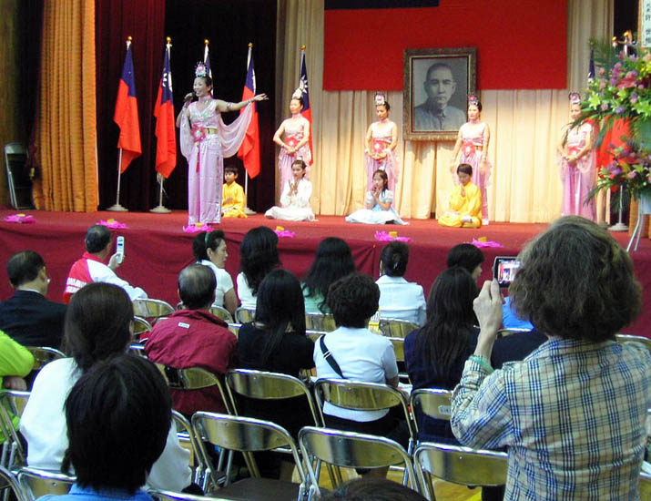 ![]() 礼堂内,法轮功学员以歌曲“梦醒”启迪人们对生命真谛的思考 |