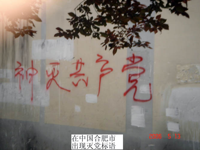 ![]() 合肥市的“神灭共产党”标语 | ![]() 合肥市的“神灭共产党”标语 |