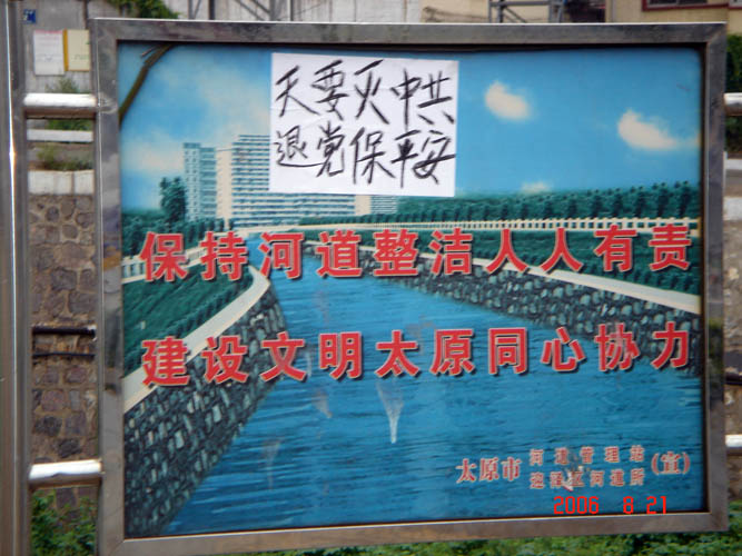 ![]() 山西太原市的“天灭中共”标语 | ![]() 陕西西安市的“天灭中共”标语 |