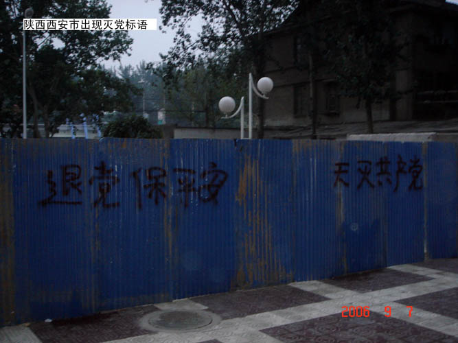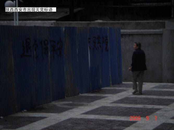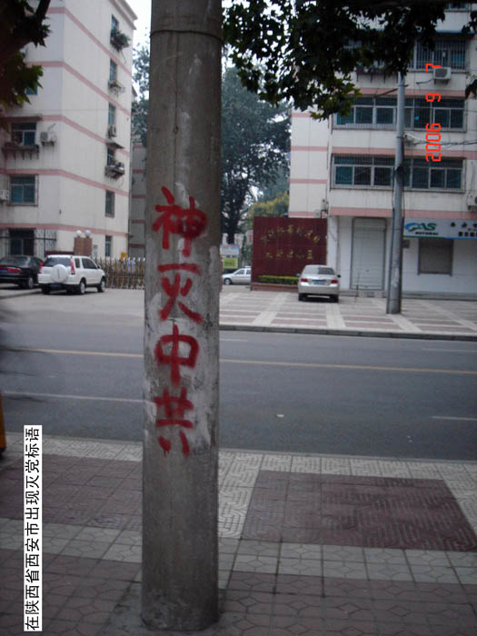 ![]() 陕西西安市的“天灭中共”标语 | ![]() 陕西西安市的“天灭中共”标语 |