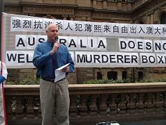 ![]() 悉尼法轮功学员市政厅前集会抗议杀人犯薄熙来到访 |