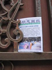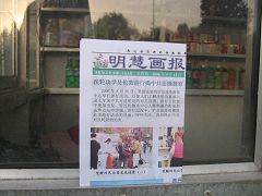 ![]() 山西忻州奇村一村民住宅大门上放着传单《明慧画报》,供村民了解真相 |