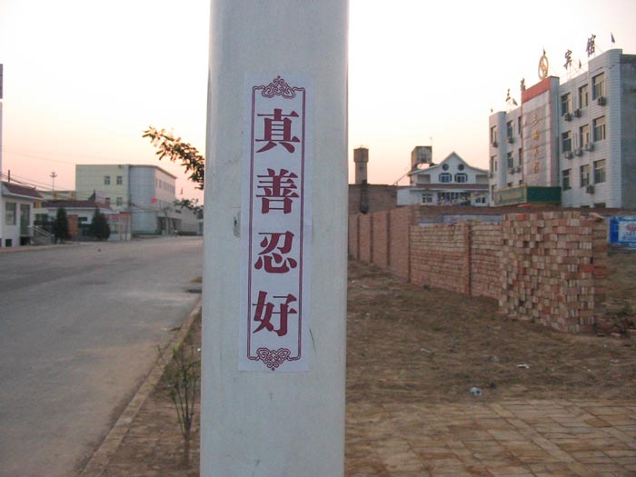 ![]() 山西忻州奇村主要街道张贴的标语“真善忍好” |