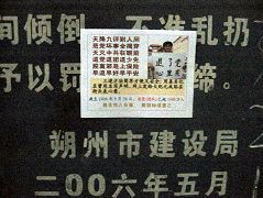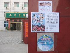 ![]() 山西朔州平朔公司工会广告牌上张贴的光盘《风雨天地行》,供有缘人拿取观看了解真相 |