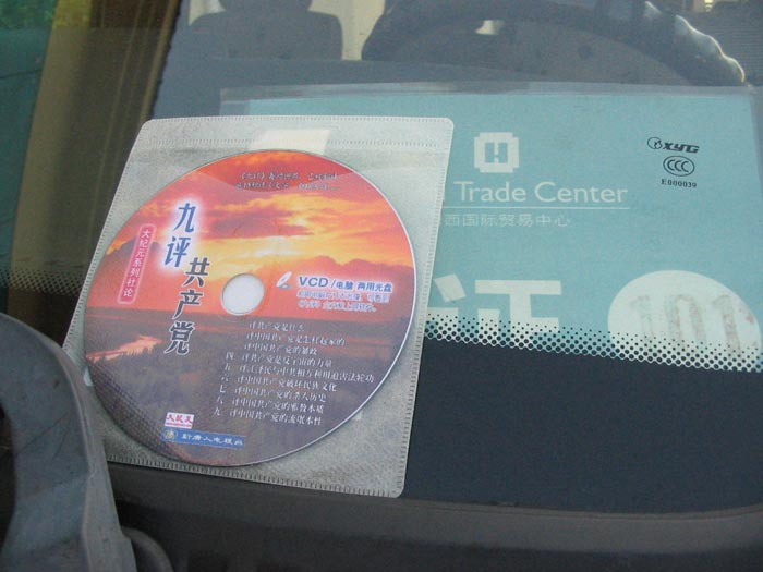 ![]() 山西忻州奇村一宾馆停放小轿车上放着光盘《·九·评*共产党》,供车主拿取观看 |