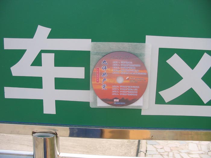 ![]() 山西忻州大营服务区车区牌张贴的光盘《·九·评*共产党》,供旅客拿取观看了解真相 |
