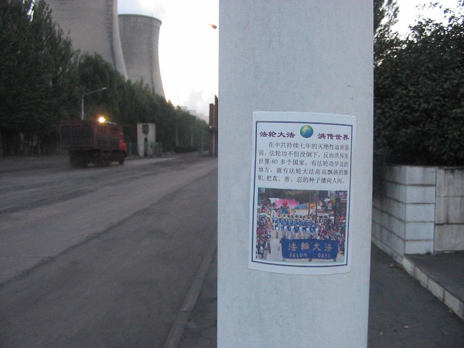![]() 山西神头发电有限责任公司张贴的不干胶“法轮大法洪传世界” |