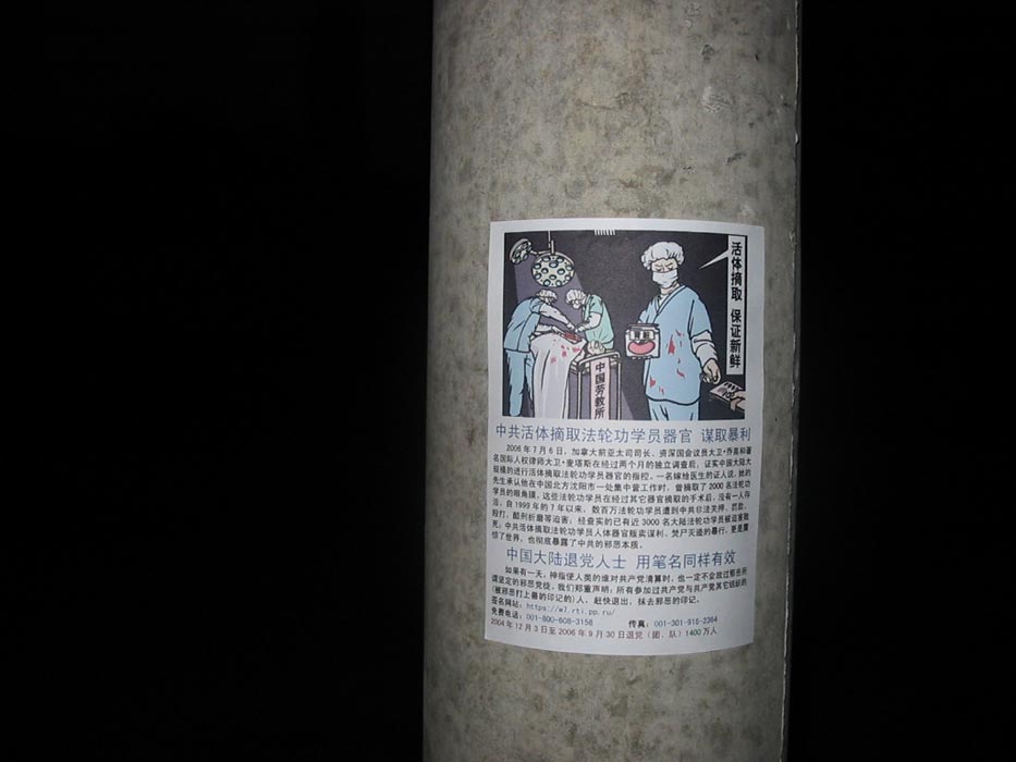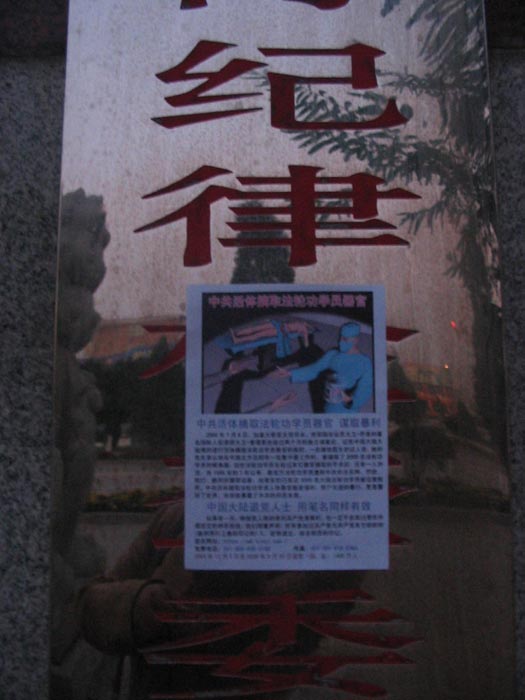 ![]() 山西神头驾驶学校张贴的不干胶“中共活体摘取法轮功学员器官 谋取暴利” |