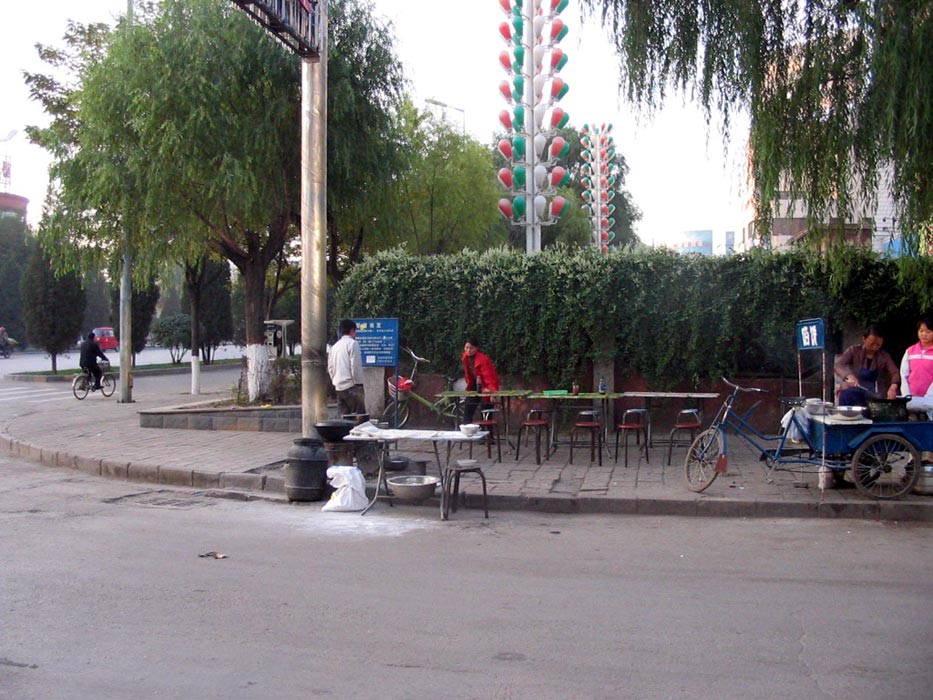 ![]() 山西朔州开发北路广告牌张贴的不干胶“退了党 心里爽”,吃早点的人在观看 |