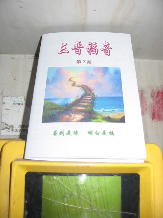 ![]() 山西朔州开发南路一电话厅放着小册子《三晋福音》,供有缘人拿取了解真相 |