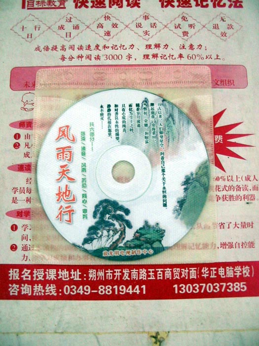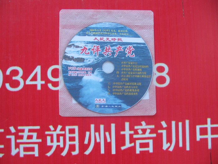 ![]() 山西朔州市一培训学校门口放着光盘《风雨天地行》,供有缘人了解真相 |