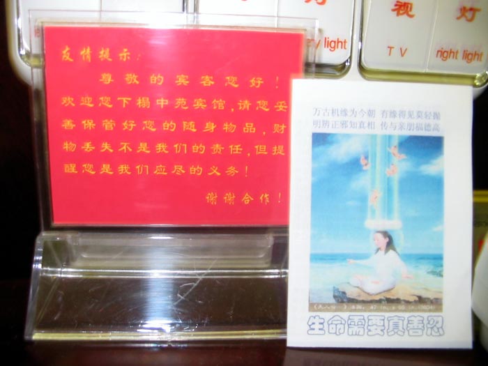 ![]() 山西朔州一宾馆内放着小册子《生命需要真善忍》,供有缘人拿取了解真相 |