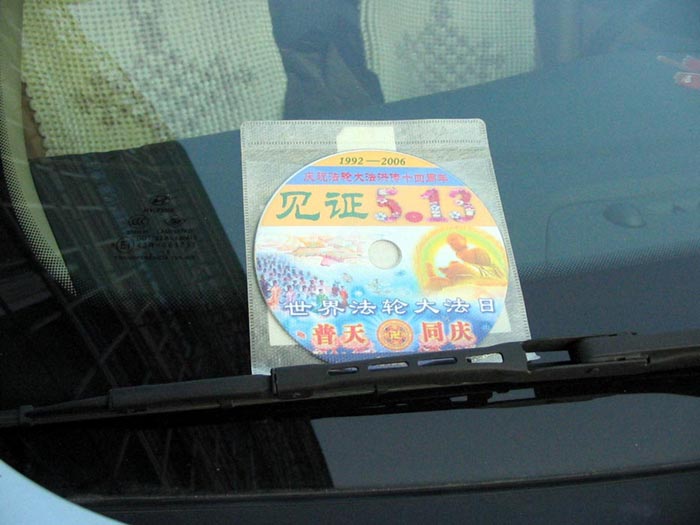 ![]() 山西朔州一居民院小轿车上放着光盘《见证5.13》,供车主拿取观看了解真相 |