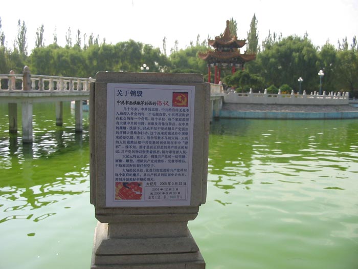 ![]() 山西朔州平朔公园张贴的不干胶《关于销毁中共书画旗徽等物品的倡议》 |
