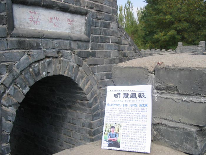 ![]() 山西朔州平朔公园“长城”迷宫里放着传单《明慧周报》山西版,供游人拿取了解真相 |