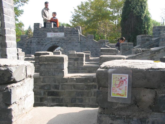![]() 山西朔州平朔公园“长城”迷宫里放着护身符,供游人拿取 |