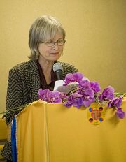 西人学员素默女士交流的题目是《信师信法》,她在得法、消病业、消除怨恨心等小故事中,谈了她得法的感受、对修炼的理解,自始至终流露出得法的喜悦和对师父的感激。