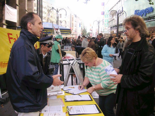 二零零六年十月的一个周末,来自北莱茵州的法轮功学员们在科隆最热闹的商业街向人们再次揭露中共迫害法轮功的恶行。在征集签名时,人们一听说是为了抗议中共盗取及贩卖法轮功学员的器官,纷纷不加迟疑的来签名。这一天,听到的最多的一句话就是:“Das werde ich auf jeden Fall tun!(这是我一定要做的!)”