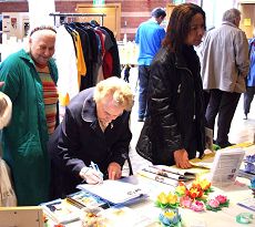 一位来自中国的女士主动和法轮功学员聊了起来,该女士刚来瑞典皇家工学院读博士,她觉的法轮功学员能在瑞典办这样的展览真了不起。学员向她讲了天安门自焚真相又介绍了·九·评*及退!党!大潮,并叮嘱她到退!党!网上去声明退!党!。