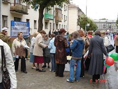 街上人流不断,音乐会从一清早就在市中心开始了。学员们在市中心的街道上打开横幅、发真相资料、炼功、叠纸莲花。来往的行人对莲花表现出极大的兴趣,许多人驻足观看,并亲手制作,学员们把纸莲花和法轮功真相资料送给他们,向他们介绍了法轮功这一源自中国、受到世界各国民众喜爱的修炼功法,并告诉他们中共如何残酷迫害那些善良的法轮功修炼者。